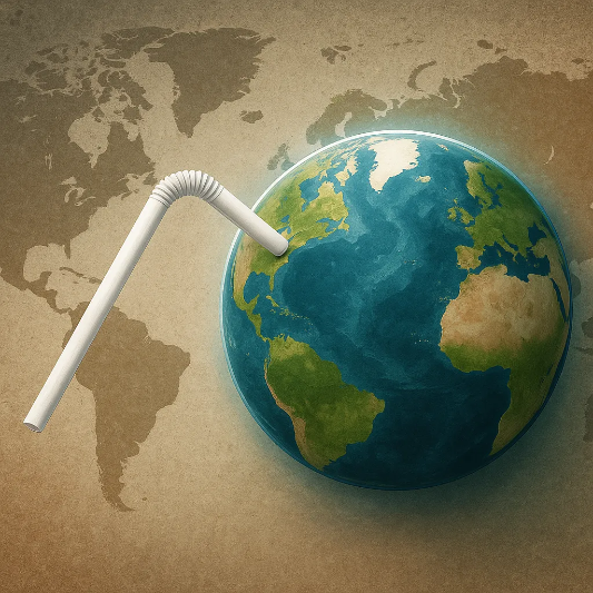 플라스틱 빨대와 지구를 표현한 사실적 이미지